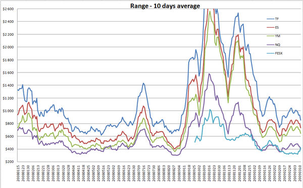 Hodnota plného bodu trhu TF je 100 dolarů, nejmenší pohyb trhu je 0,10 bodu, což v dolarovém vyjádření představuje hodnotu 10 dolarů. Ze zmíněných čtyř hlavních komoditních kontraktů na akciové indexy je trh TF jednoznačně nejvolatilnější a nejživější, tj. určený především pro zkušenější a agresivnější obchodníky a obchodníky, kteří dokáží těžit z větších pohybů.