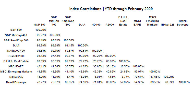 Na závěr ještě tabulka z burzy CME zobrazující korelaci mezi jednotlivými indexy. Jak vidíte, většina hlavních indexů koreluje velmi těsně. Je však dobré současně pamatovat i na to, že v případě nějaké zásadní krize (např. finančního sektoru) mohou začít být volatilnější trhy, které daný sektor obsahují (např. NQ neobsahuje žádné finanční tituly, ale byl zase nejvíc zasažen např. internetovou bublinou). V této oblasti není od věci dělat si i vlastní průběžné porovnání trhů například s ohledem na čas, kdy jej obchodujeme. Ukázka takové vlastní analýzy rozpětí akciových indexů od tradera, který na finančníkovi diskutuje pod nickem yax:
