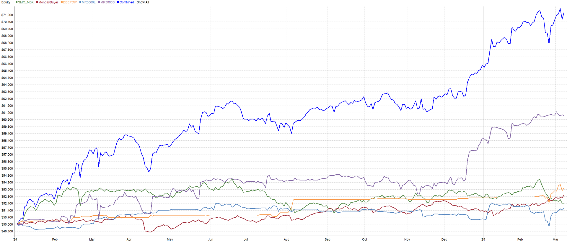 Konkrétně výukové portfolio Workshopu právě v březnu 2025 vytvořilo nová maxima, a to navzdory poklesu amerických akcií v uplynulých týdnech. Opět to ukazuje, že diverzifikace je velkou přidanou hodnotou systematického obchodování.