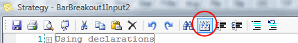 Strategii otevřete v NinjaTrader v okně pro práci s kódem: Tools > Edit NinjaScript > Strategy a vyberte BarBreakout1Input2