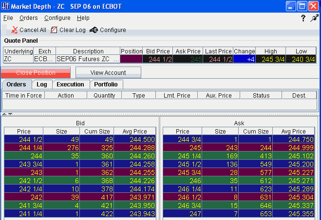 Máte-li vybraný správný kontraktní měsíc, již nic nebrání obchodování příslušné komodity přímo z platformy Interactive Brokers. Jak vidíte na screenshotu, např. kukuřice se dnes ve své elektronické verzi na eCBOT obchoduje v běžných obchodních hodinách velmi čile: