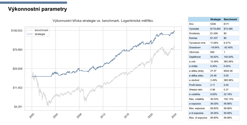 Sám obchoduji rotační strategii na akciích indexu Nasdaq 100. Zde se s nástupem AI naplno v roce 2023 ukázala síla přístupu. Jelikož strategie drží vždy několik nejsilnějších akcií indexu, dokázala zachytit momentum v těch aktuálně nejžhavějších technologických titulech a pěkně vydělat (viz screenshoty otevřených pozic, které jsem poslední dobou sdílel v lekcích z živých trhů).