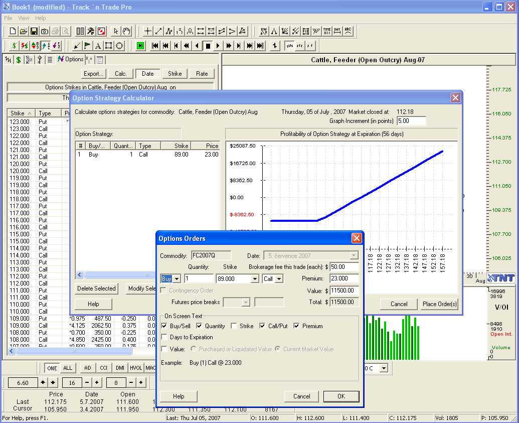 Osobně obchoduji opce na akcie a především EFT, kde je díky větší likviditě a více opčním burzám často výrazně "férovější cena" a lepší plnění než u futures opcí, ale pochopitelně také opce na komoditní kontrakty jsou zajímavé pro řadu obchodníků. Téma nástrojů pro backtesting by si patrně vyžádalo rozsahem samostatný článek, tak pouze jeden konkrétní tip. Jelikož řada zdejších futures obchodníků používá analytický software Gecko TnT (http://www.financnik.cz/komodity/recenze-sw/track-n-trade-pro-4.html), hodí se připomenout, že i do tohoto programu lze získat od výrobce plugin pro práci s opcemi, včetně historických cen. Prostředí není v žádném případě tak sofistikované jako u specializovaných opčních platforem, ale o to příznivější je cena. Samotný plugin stojí 187 dolarů (včetně dlouholeté historie opčních cen), aktualizace dat stojí od 15-20 dolarů měsíčně podle délky předplatného.
