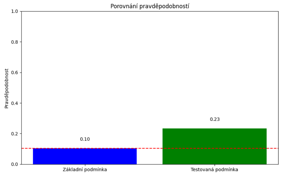 V edge finderu hledáme jen obecné tendence. Má určitá kombinace kontextu vliv na to, jak se bude trh vyvíjet následující den? Pokud ano, vidíme například výrazně zvýšenou pravděpodobnost výskytu trendového dne vůči běžnému průměrnému dni. Jeden z vyhlídnutých edge vypadá například takto: