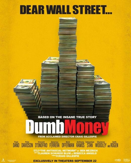 Film Dumb Money, režírovaný Craigem Gillespiem, se zaměřuje na skupinu postav, které se podílely na události známé jako GameStop short squeeze v roce 2021 a přináší osvícený pohled na nerovnováhy na finančním trhu. Hlavní role hrají Paul Dano a Seth Rogen a film je pojat jako životopisné komediální drama.