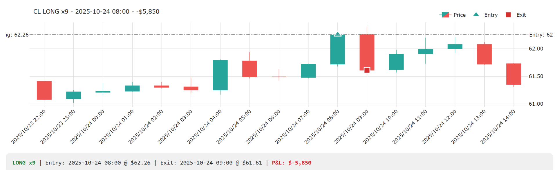 Zde je vizuální ukázka obchodu na ropě (CL), který by zrovna skončil ztrátou (falešný průraz):