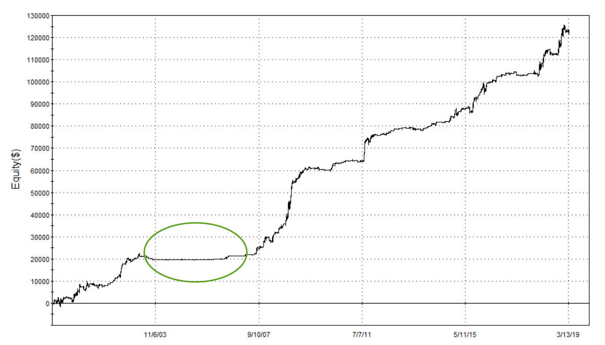 A skutečně. V indexech bylo velmi obtížné v letech 2003–2006 stavět strategie, které by pak dokázaly vydělávat i v dalších letech. Je to hlavně z důvodu nižší volatility. Prakticky všechny mé mechanické intradenní systémy na akciové indexy mají v daném období minimum obchodů.
