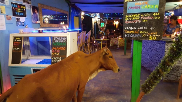 Byť je Goa evropštější a na jídelním lístku můžete nalézt i hovězí, krávy jsou zde přítomné na každém kroku stejně jako kdekoliv v Indii.