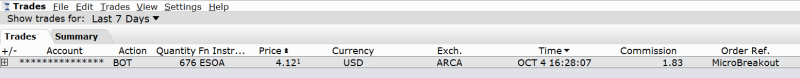 Zde je konkrétní ukázka jednoho z mých obchodů z minulého týdne. Jde o účet, kde neobchoduji extrémní objemy akcií, a tudíž „Tiered“ netěží z objemových slev. Stejné komise budete mít i na velmi malém účtu.