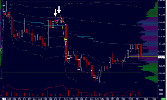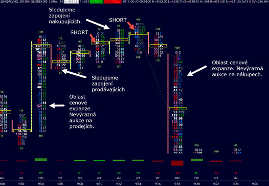Oproti tomu vnímám jako efektivní sledování stavů nabídky/poptávky v trhu uvnitř jednotlivých pohybů. Jistě, existuje mnoho profitabilních intradenních přístupů, nicméně právě pokud mířím na menší pohyby, lze jejich základ vysledovat například v numbers barech. Zde si můžeme interakce mezi nakupujícími a prodávajícími dobře popsat a vstupovat tak na základě informací, které nám poskytuje aktuálně trh. To co v trhu dnes sleduji, by se stručně dalo naznačit například takto: