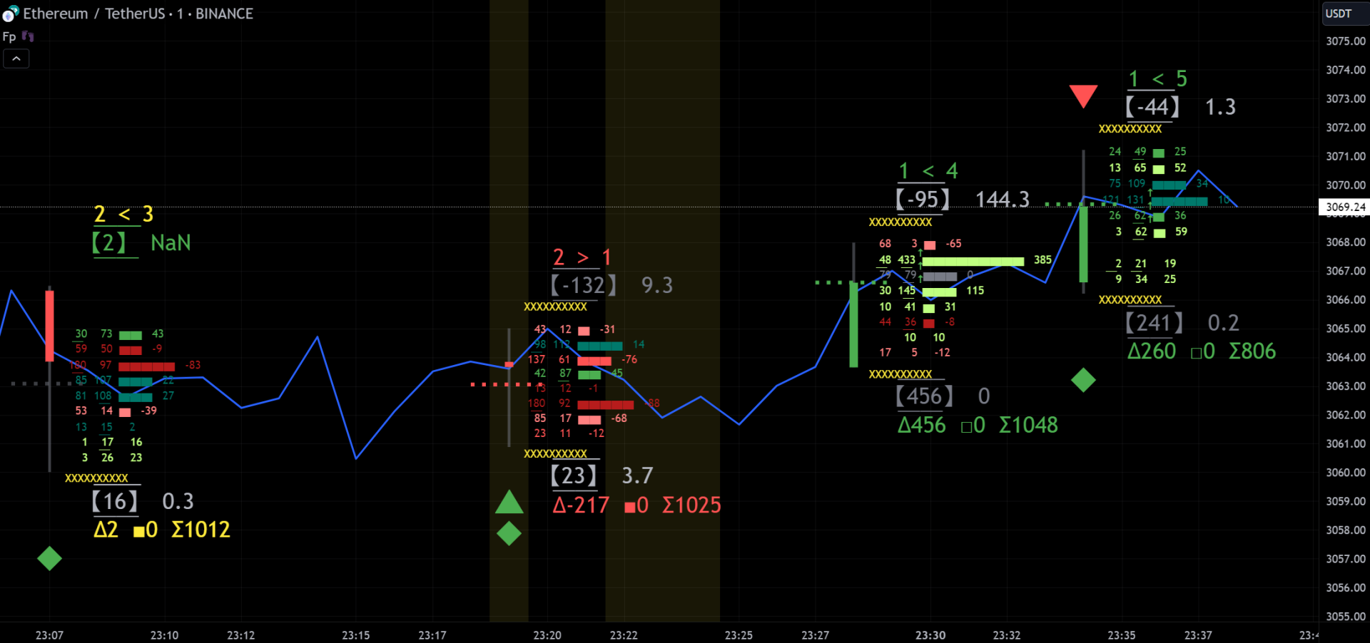 Mnoho začínajících obchodníků se do této oblasti dnes vrhá proto, že vypadá zajímavě a nevšedně. Skutečně si však udělejte dobrý průzkum toho, do čeho se případně plánujete pustit. Na screenshotu je interpretace orderflow do tzv. footprintů. Konkrétně v platformě TradingView (jde o tento footprint indikátor). Rozhodně se podobného vizuálnímu stylu zobrazení informací nedá ani dnes upřít atraktivita.