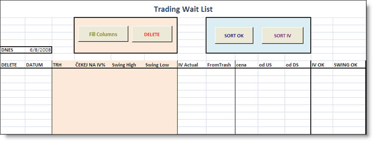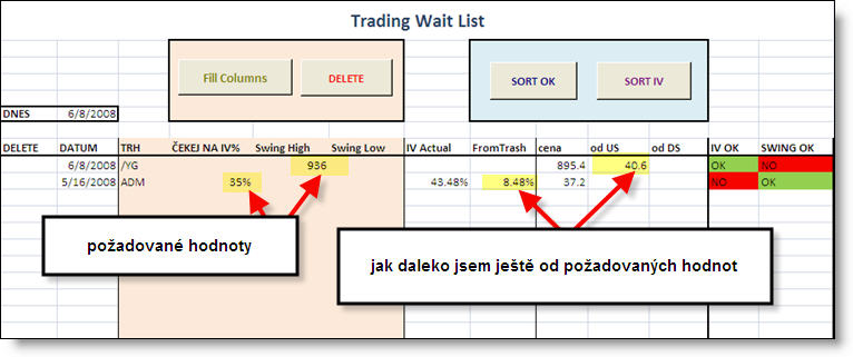 Jednoduchý excelovský sešit, který používám k čekání na vhodné obchody, předvybrané dle mých kritérií.