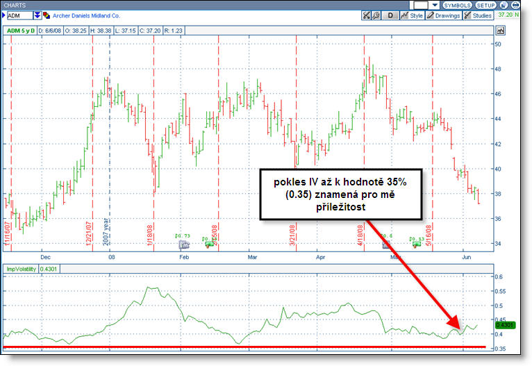 Nejprve chci však vidět IV klesnout právě až na úroveň 35%, proto toto je hodnota, kterou si do svého excelu poznamenám u „klienta“ ADM.To jsou tedy dva z celé řady mých aktuálních potenciálních "klientů", kteří jsou obeznámení s mojí konkrétní nabídkou a já nyní jen čekám, zda-li některý z těchto "klientů" přijde ke mně v dohledná době sám, s tím, že je připravený na obchod dle mých kritérií.