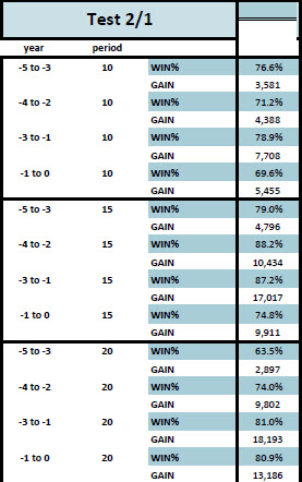 - Pokud se kouknete na všechny případy výše - ve všech pár prokazuje velmi vysokou stabilitu WIN%, tj. téměř v každém testovaném časovém rámci a s téměř každou z testovaných period by se obchodoval s úspěšností kolem 70%!