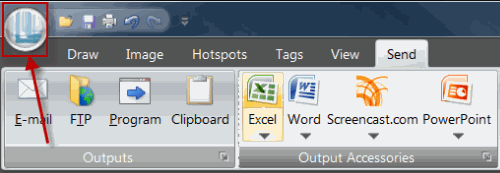 Zeditovaný obrázek nezapomeňte uložit klasicky. V Snagit naleznete hlavní menu po kliknutí na velké modré kulaté logo v levém horním rohu programu: