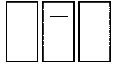 Tzv. doji úsečky používám v případě rozjetých trendů jako další způsob posouvání stop-lossů. Doji úsečky jsou v podstatě svíčky, které vypadají jako „kříže“ – viz obrázek.