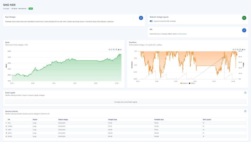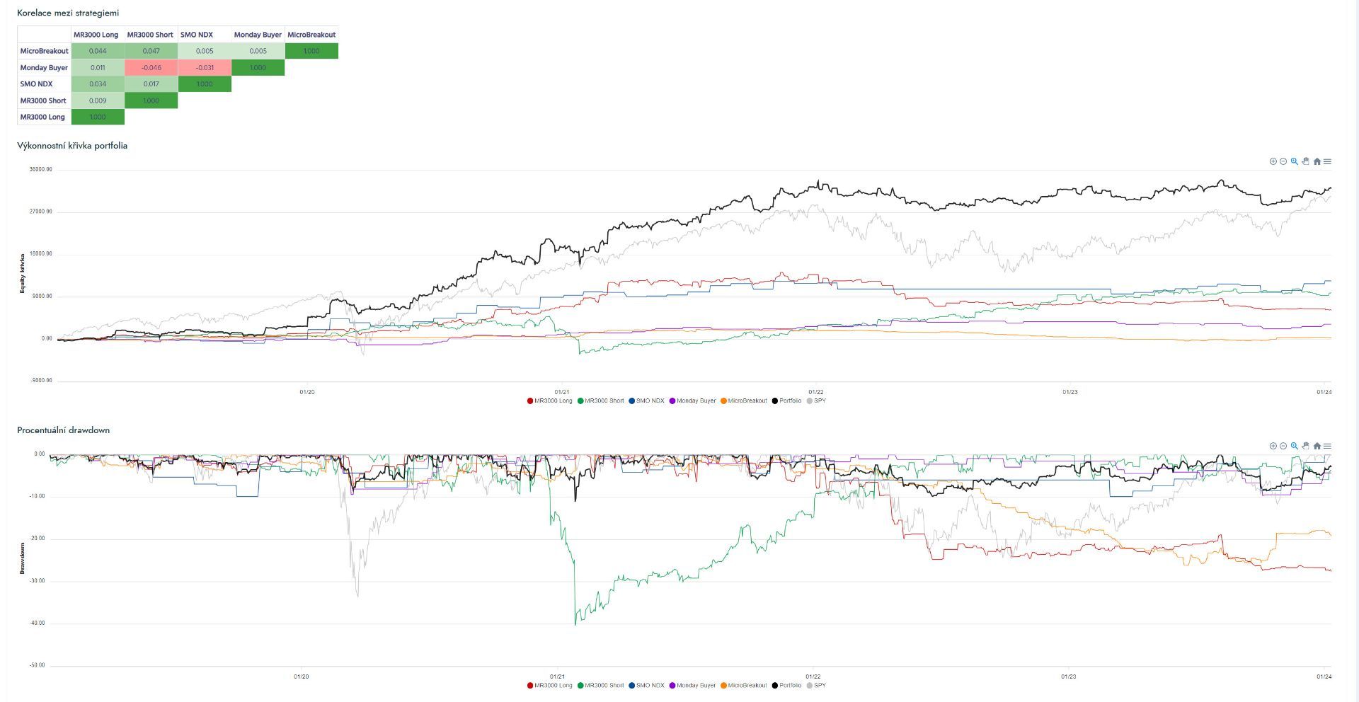 Postupně se nám v Trading Roomu podařilo vybudovat dashboard, ve kterém je možné dynamicky vytvářet a analyzovat portfolia strategií: