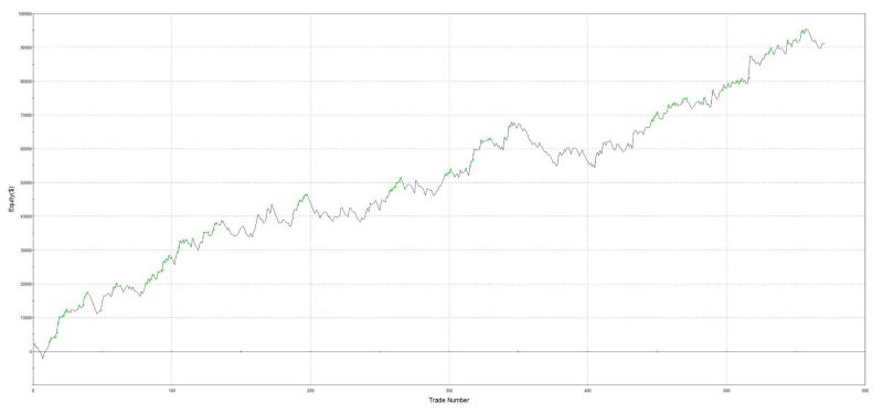 Přetavení edge do obchodovatelného intradenního breakout systému. Ukážeme si, jak vytvořit a obchodovat intradenní breakout systém. U ukázky vyjdeme z pravidel systému, který jsem sám spustil do trhů. Jeho equity křivka např. na indexu Nasdaq 100 vypadá takto: