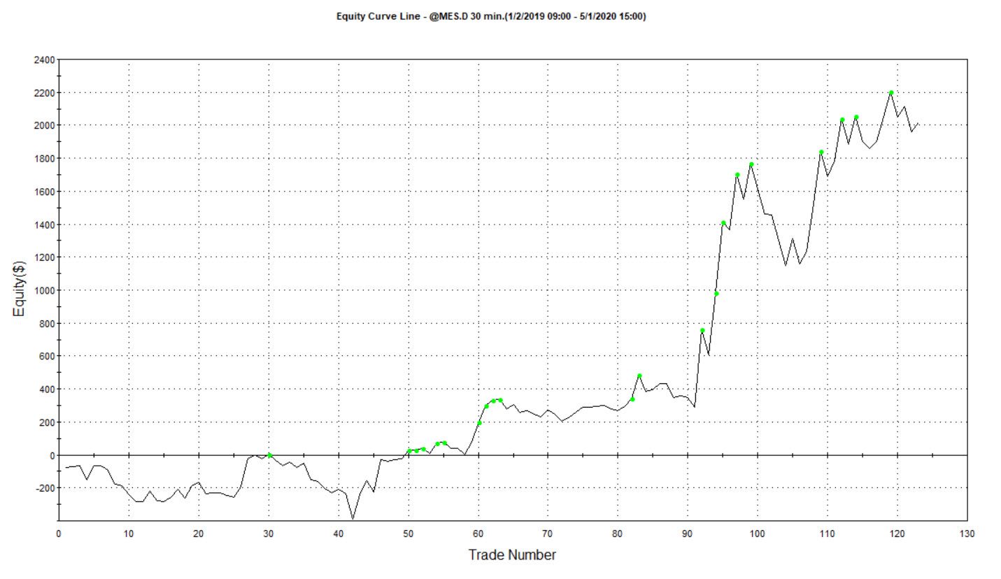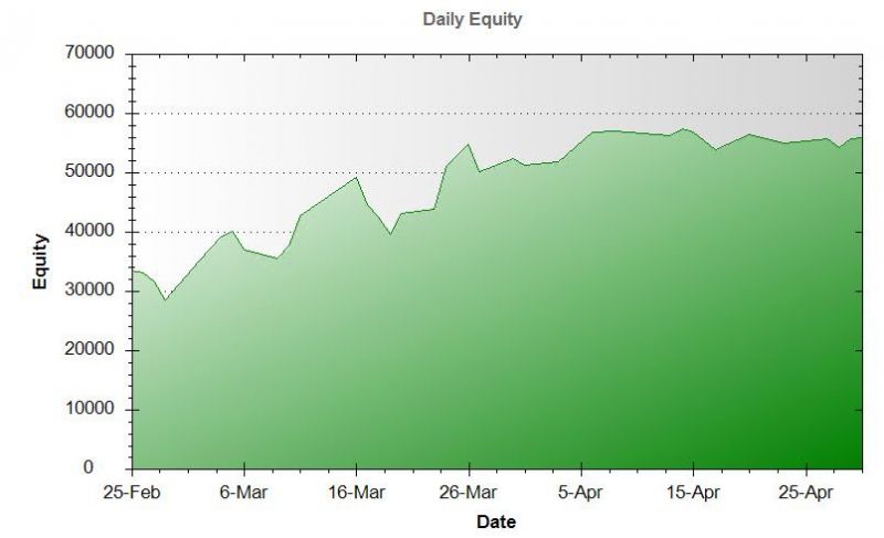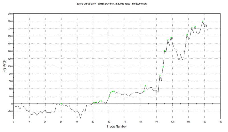 Jak se podobný systém může chovat na akciovém indexu e-mini S&P 500 jsem popisoval nedávno v článku +93 % za 3 měsíce – breakout systém na ES. Je zajímavé si uvědomit, že tento systém nebyl nijak na aktuální volatilitu optimalizován – naopak byl vytvořen již před několika lety. Za poslední měsíc si přitom připsal další nemalé zisky dané hlavně tím, že se trhy nyní hýbou. Takto vypadá další vývoj aplikovaný na mikro S&P 500 – kontrakt, který je 10x menší než e-mini S&P 500, a lze jej tak obchodovat s menším kapitálem: