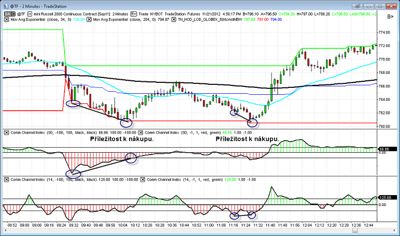 Pro divergence využívám jak CCI14, tak CCI50. Nemám zde preferenci, tvrdím, že divergence vždy zůstane divergencí, ať je na CCI14, nebo CCI50.