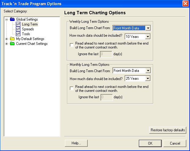 TIP: I v programu typu Gecko TnT se dají hrubě nastavit pravidla pro vytváření těchto vyšších timeframe. Nástroj najdete v Program Options > Global Settings > Long Term: