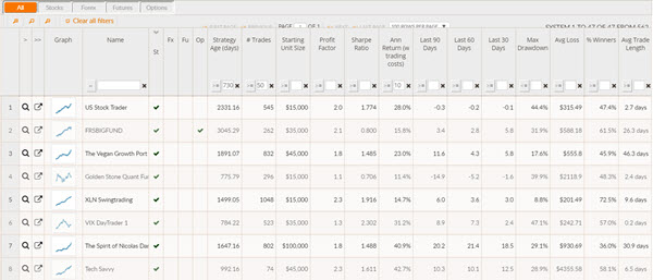 Po bezplatné registraci lze na serveru collective2.com filtrovat systémy, které jsou zde poskytovány.