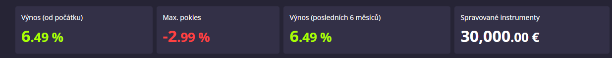 Pokud by má výkonnost pokračovala podobným tempem jako dosud, tedy průměrně bych vydělal cca 3 % měsíčně, další měsíc bych z první alokace získal 15% podíl na zisku, tedy konkrétně 135 euro/měsíc. Nejsou to velké peníze, ale posouvá mě to k tomu, že účet bude zdarma (výplaty pokryjí předplatné).
