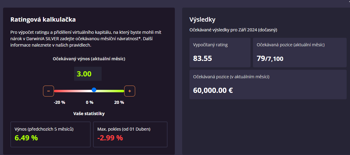 V ratingové kalkulačce, která je v aplikaci k dispozici, hned vidím, kolik bych s 3% ziskem další měsíc získal v podobě další alokace: