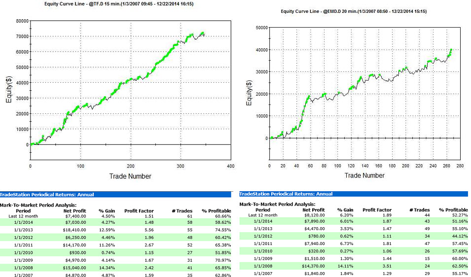 Ovšem jak na denních datech vyvíjet intradenní systémy? Tím, že nevidíme „dovnitř“ denních úseček, tak pochopitelně můžeme vyvíjet jen určité typy intradenních systémů. Například jednoduché breakout či mean reversion systémy vycházející z denní otevírací ceny či jiného fixního bodu denních grafů.