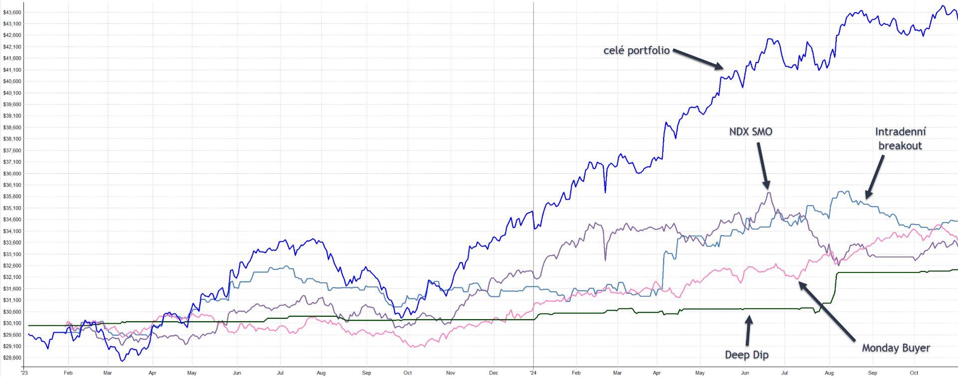 Pokud se podíváme na vývoj od roku 2023, kdy již opět byly všechny strategie plně aktivní, vypadal obrázek následně: