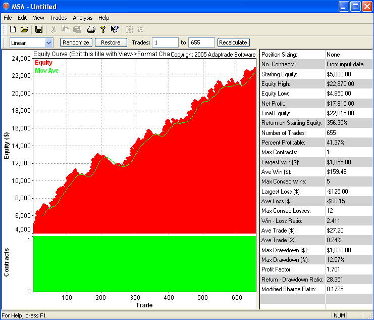 Dnešní článek představuje především krátký tip na software, který osobně považuji za velmi zajímavý a doporučuji jej každému obchodníkovi, který již má postavený svůj obchodní systém a hledá, jak byl jej vylepšil přidáním money-managementu. Skutečně budete možná překvapeni, jak lze s různými taktikami MM nejen výrazně zvyšovat zisky, ale i snižovat drawdown nebo vyhlazovat equity křivku. MSA vám navíc dokáže, po určitém studiu programu a dostupných funkcí, velmi napovědět do jaké míry je vaše strategie statisticky robustní a jaké různé scénáře vás v budoucnu s daným přístupem mohou čekat.