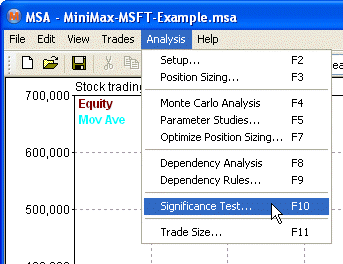 MSA nabízí obchodníkům i velmi důležité nástroje pro testování robustnosti dané obchodní strategie. Obchodník může např. nechat "zpřeházet" obchody a sledovat, zda-li je equity křivka stále obchodovatelná, podrobit systém tradiční Monte Carlo analýze, sledovat statistickou závislost jednotlivých obchodů mezi sebou, provést statistický test významnosti strategie a další.