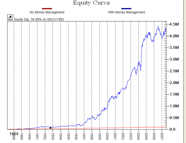Pokud bychom pak na čísla aplikovali Larryho money management, který je též v knize popsaný, zisky by při počátečním účtu 15 000 USD mohly rázem vyrůst až na více jak 4 miliony USD: