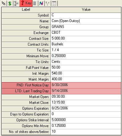 Hodnoty FND a LTD jsou pro poziční obchodníky velmi zásadní. FND (First notice day) představuje upozornění, že se daný kontrakt přestane brzy obchodovat. V praxi FND znamená, že většina brokerů bude požadovat, aby klienti k tomuto datu uzavřeli v daném trhu své pozice. LTD (Last trading day) představuje zcela poslední den, kdy se daný trh obchoduje. Po LTD se daný kontrakt přestává obchodovat a začíná proces tzv. vypořádání - fyzického dodání dané komodity.