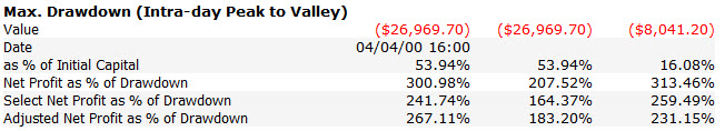 1) Abychom mohli systém obchodovat, museli bychom reálně nasadit účet alespoň 1.5x větší (raději 2-3x), než je největší intradenní drawdown. V tomto případě tedy 40 000 USD.