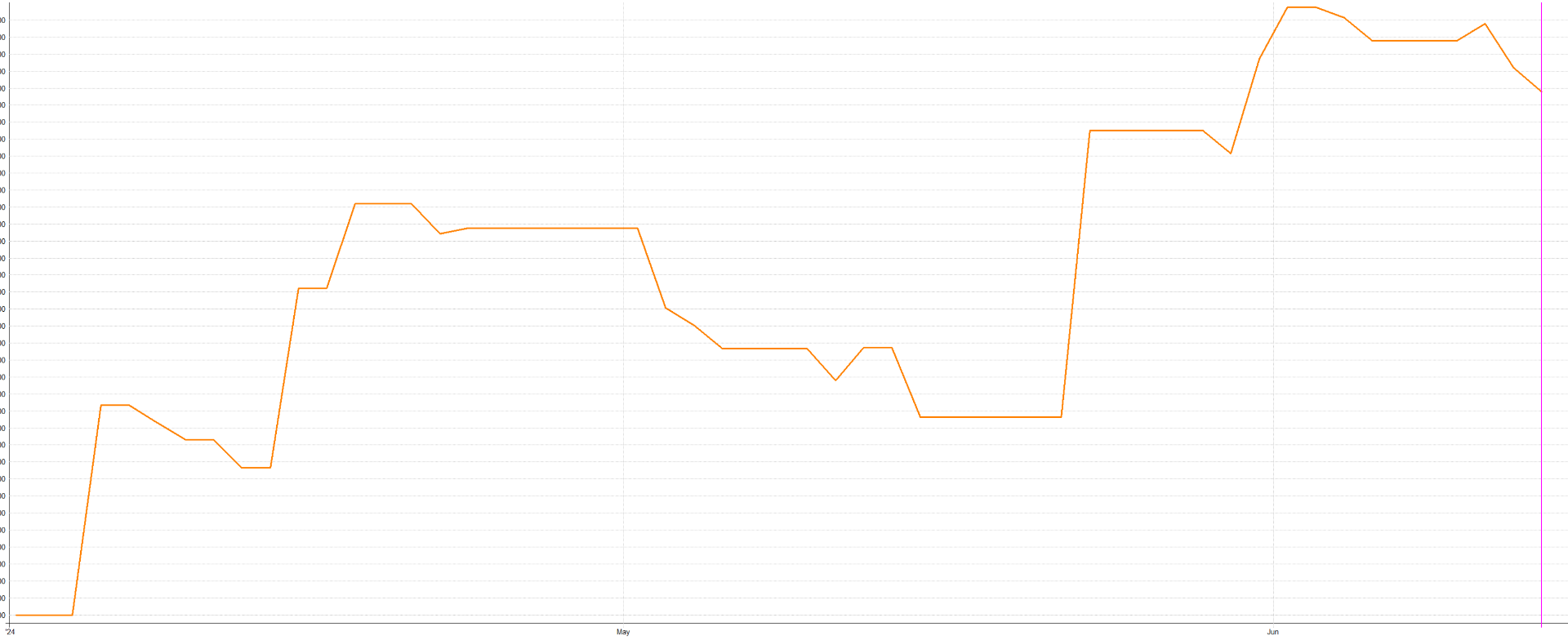 Osobně jsem strategii nasadil na své účty živě v dubnu 2024. Nepatrně jsem si přizpůsobil publikovaný kód a na hlavním účtu strategii obchoduji s využitím ETF trhů a na výsledky si zatím nemohu stěžovat. Takto vypadá má živá equity křivka od spuštění systému: