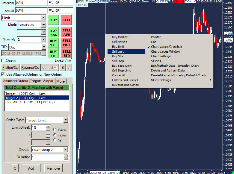 V Sierra Chart lze obchody zadávat několika způsoby: