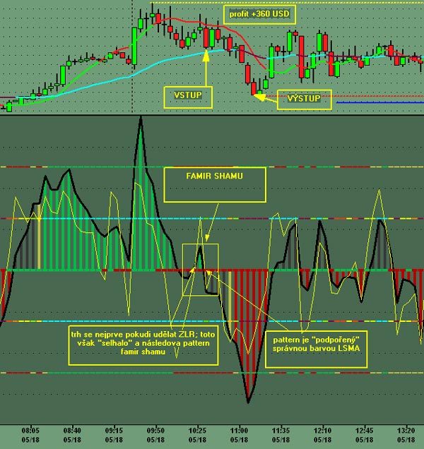 Vidíte, že se nejedná o nic složitého. Pattern však vyžaduje již trochu cviku a pro naprosté nováčky není příliš vhodný. Vyžaduje totiž převážně určitý cit pro celkový systém WoodiesCCI, neboť převážně v době nedostatečně trendujících trhů může nadělit famir shamu mnoho zbytečných ztrát. Jak však jednou pattern dostanete „do krve“, můžete s ním vydělávat skutečně zajímavé peníze. Nutno ještě říci, že pattern není příliš obvyklý, resp. většinou se nevyskytuje v trhu každý den.