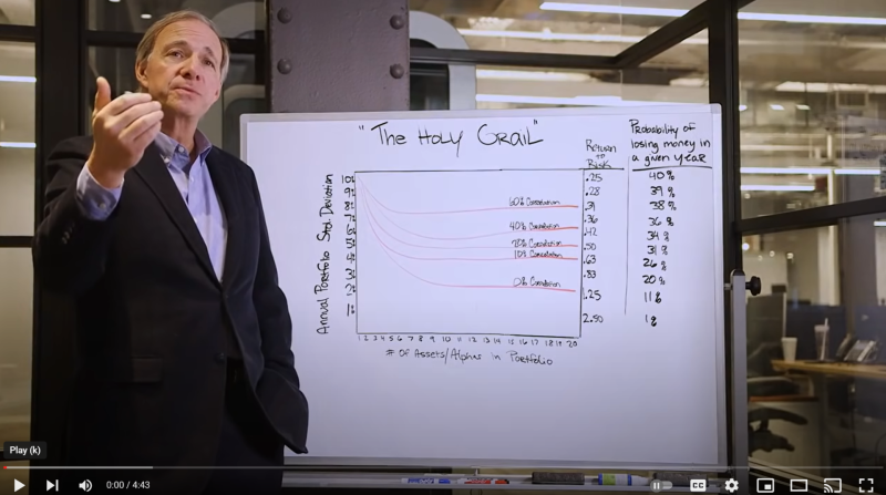 Ray ukazuje, že to, co ovlivňuje celkový risk našeho obchodování, je počet systémů (nebo zdrojů příjmů) a jejich korelace.