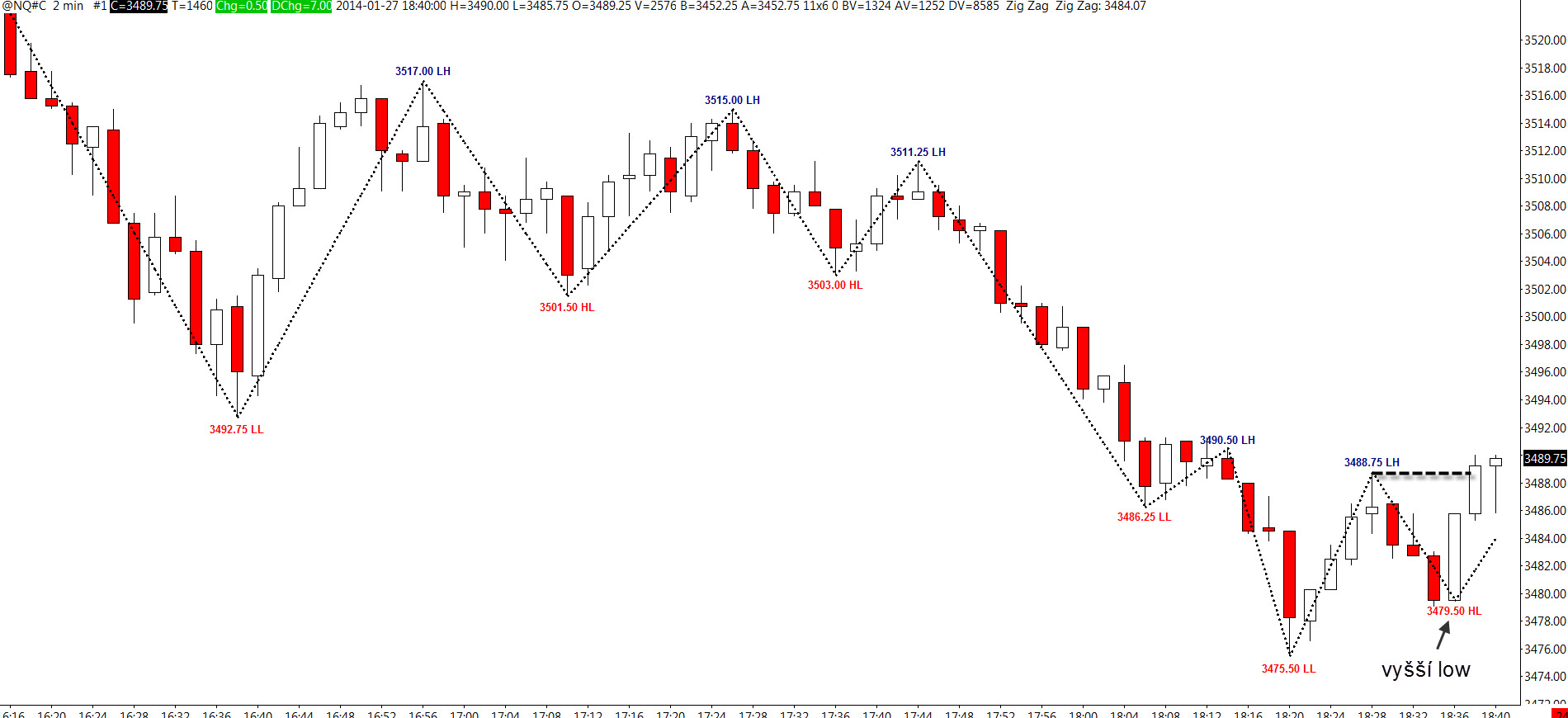 Všimněte si například, že jsem u swingů nechal zobrazovat písmena HH, LH, HL, LL. Jde o zkratky pro: