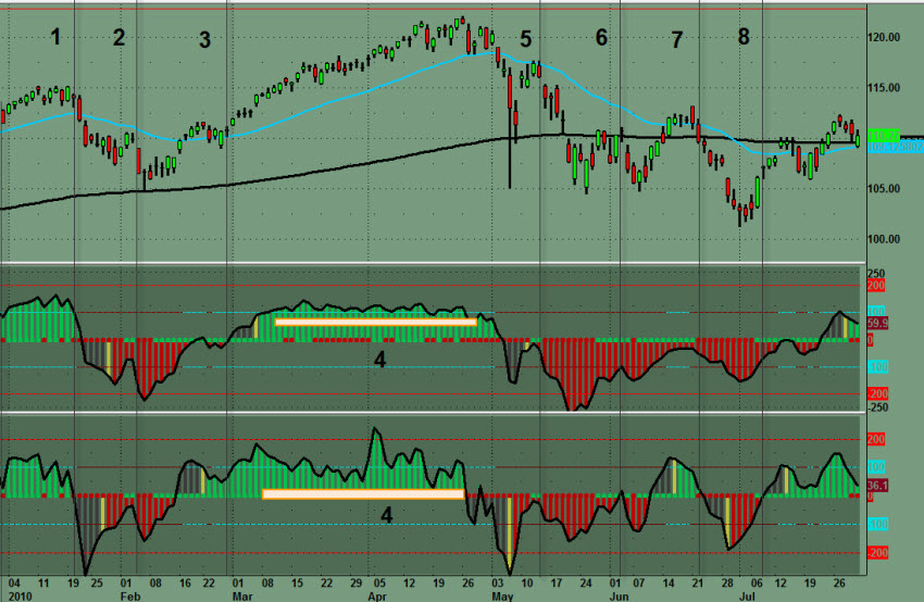 začátkem července pak přišel protitrendový signál 0/100 long. Nákup v tomto bodě by vyžadoval poměrně odvahu (vše naopak vypadalo jako nově rozjetý downtrend), takto to však u protitrendových obchodů bývá - většinou vyžadují větší odvahu k akci než obchody trendové. Signál se nakonec ukázal ne jako nesmyslný a dle nastaveného managementu opět mohl přinést zisk.