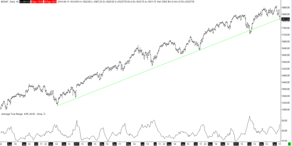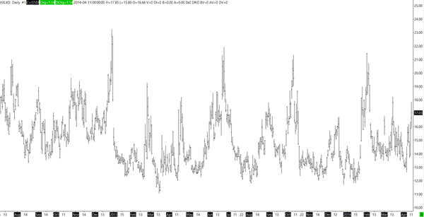 V období přípravy článku (neděle 13. 4. 2014) trhy neprochází žádným extrémním vývojem, na který bychom se nemohli připravit. Pro studium vhodných taktik obchodování a risk managementu můžeme použít relativně nedávné oblasti s podobnou volatilitou.