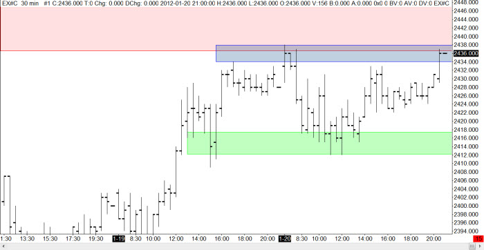 Tady je například ukázka zjednodušeného plánu pro pondělní dopolední seanci (tj. 23.1.2012). Článek připravuji k publikování s předstihem po této seanci a obchody, které z dopoledního obchodování evropské seance vzešly, jsem v reálném čase publikoval na blogu včetně několika grafů.