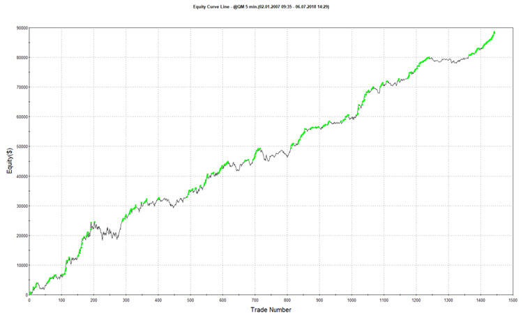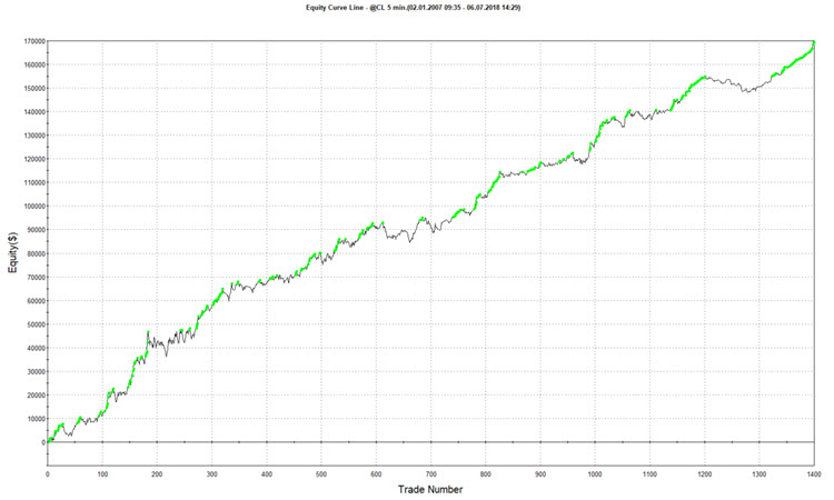Podobný přístup vám pomůže také testovat různá technická řešení a skončit u toho, které vám vyhovuje nejvíce. V tomto ohledu je dobré pracovat s jednoduchými myšlenkami, které se snadno portují z jedné platformy na druhou. Takto třeba vypadají výsledky CL systému portovaného s drobnou úpravou na platformu NinjaTrader, které publikoval v AlgoLab trader zury:
