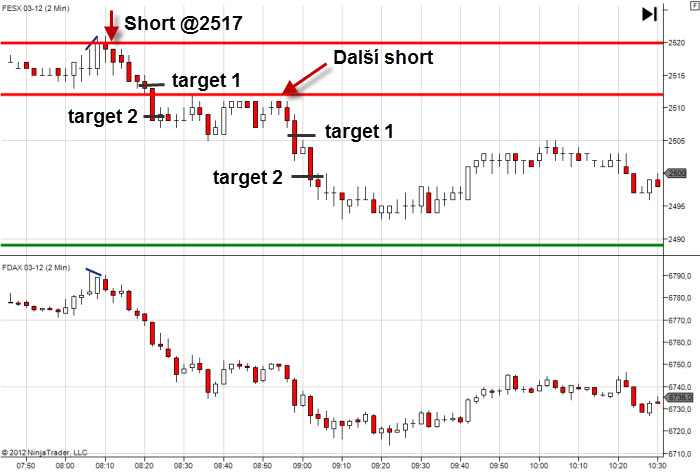 Doprovodné obrázky pocházejí opět z trhu FESX, ale informace jsou podle mého názoru aplikovatelné na libovolný trh, tj. včetně amerických odpoledních seancí. Sám občas obchoduji americké dopoledne hodinu, dvě po otevření a používám na to zcela stejné taktiky.
