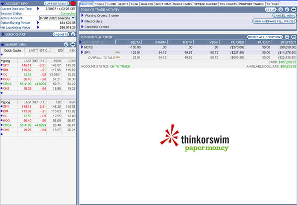 Za zmínku stojí i takzvaná „paper money“ verze – tj. možnost založit si fiktivní účet s fiktivními penězi a všechny 4 výše popsané nástroje naprosto svobodně využívat pouze s hypotetickými penězi – což je naprosto perfektní možnost jak opce paper-tradovat. Paper money verze nemá žádná omezení a veškeré funkce můžete využívat stejně svobodně, jako byste pracovali již s „živým“ účtem.