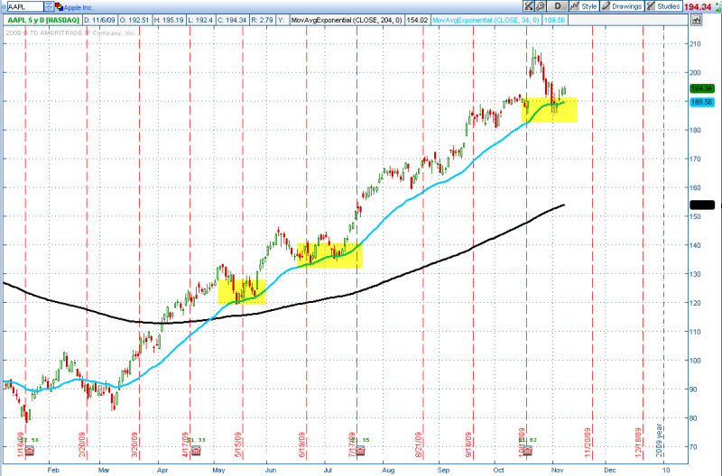 Důvod, proč mám tak rád EMA34 a EMA204 je však ještě jeden - a sice univerzálnost těchto klouzavých průměrů. Dlouhodobě jsem vypozoroval, že obchodní techniky s pomocí EMA34 a EMA204 můžete využívat prakticky kdekoliv - v intradenním obchodování, v pozičním obchodování, u akcií (i těch tuzemských), u forexu apod. Zde několik dalších ukázek: