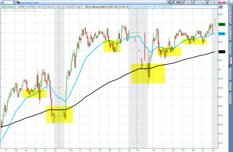 - Kdo z vás dlouhodoběji EMA34 a EMA204 již používá, zajisté si všiml, že v silně rozjetém trhu (zejména v daytradingu na začátku dne) trh k EMA34 příliš nekoriguje. Pro takový případ můžete zkusit klouzavý průměr VMA9 - avšak pozor, využívat opravdu jen a jen v silně a prudce rozjetém trhu na úvodu dne.