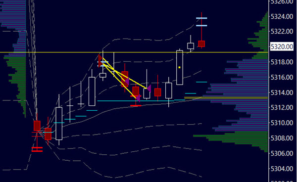 A toto je pro ilustraci páteční FIMS obchod vycházející opět z předem připravené oblasti z profilů odpovídajících ceně cca 5 319.50 (žlutá linka v grafu):