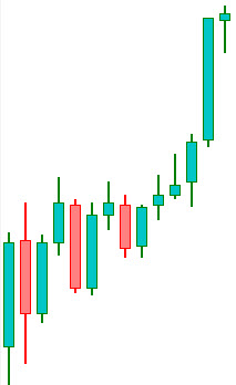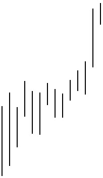 U jednotlivých cenových úseček můžeme vzít pouze jejich cenový rozsah (high – low). Takový graf by vypadal takto: